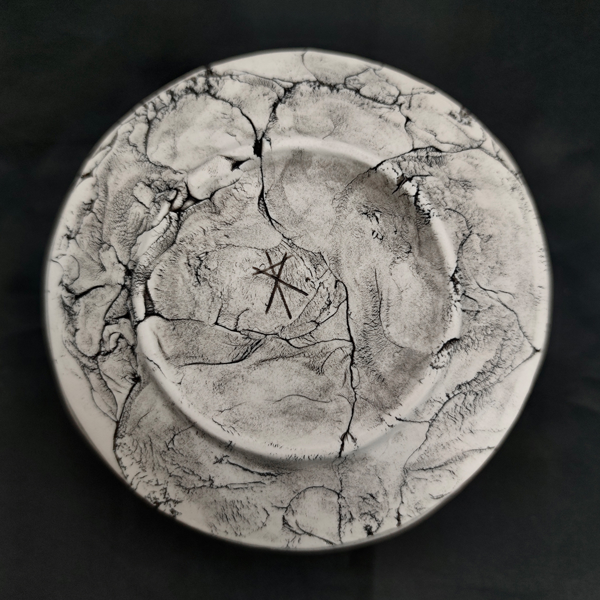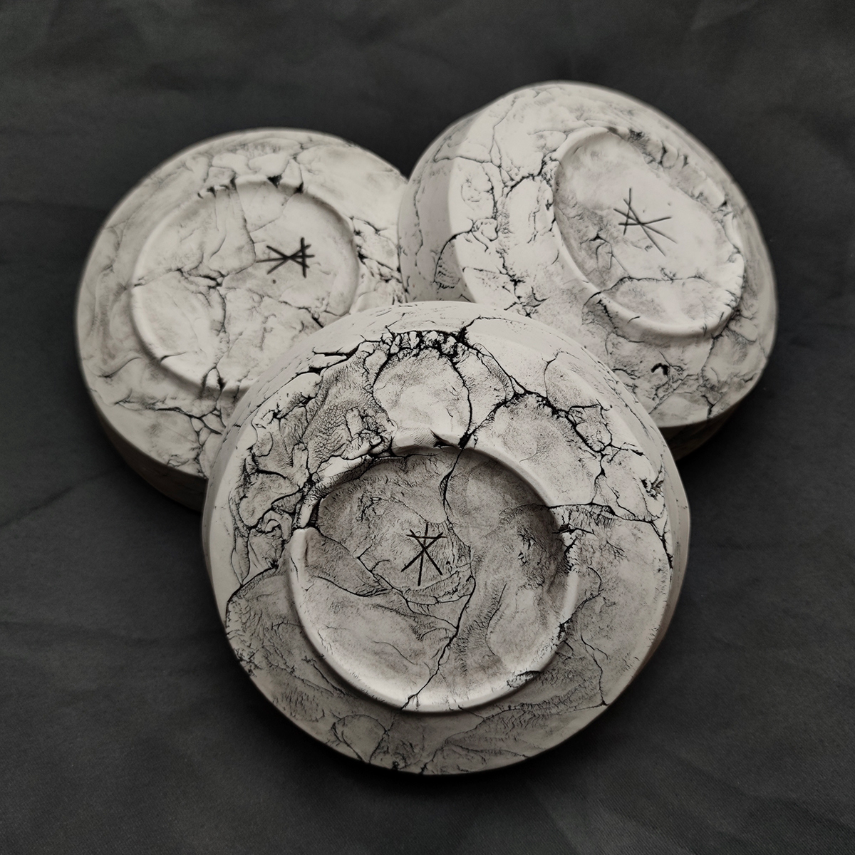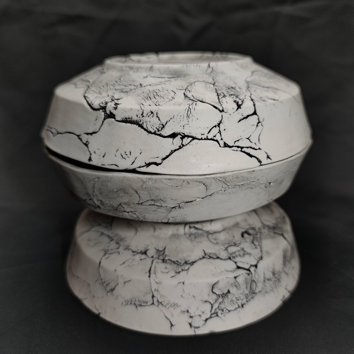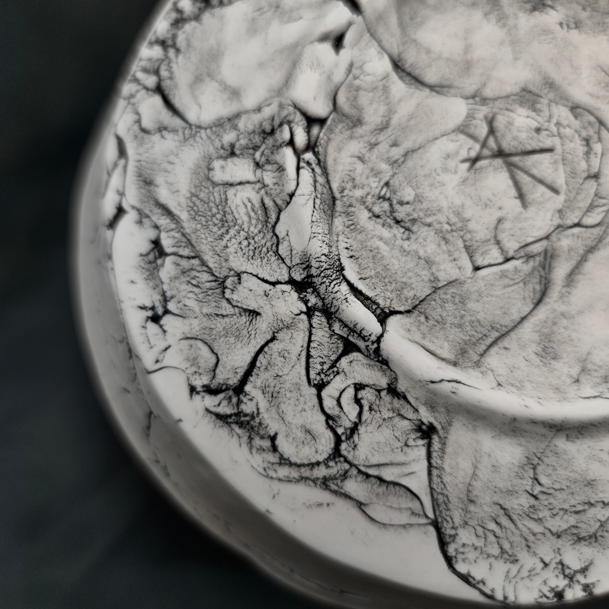 Handmade marble bowl with rim, crafted from white clay with a black marbled effect and a subtle rim detail. Ideal for oatmeal, snacks, or small servings.